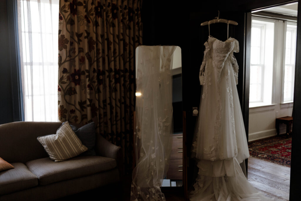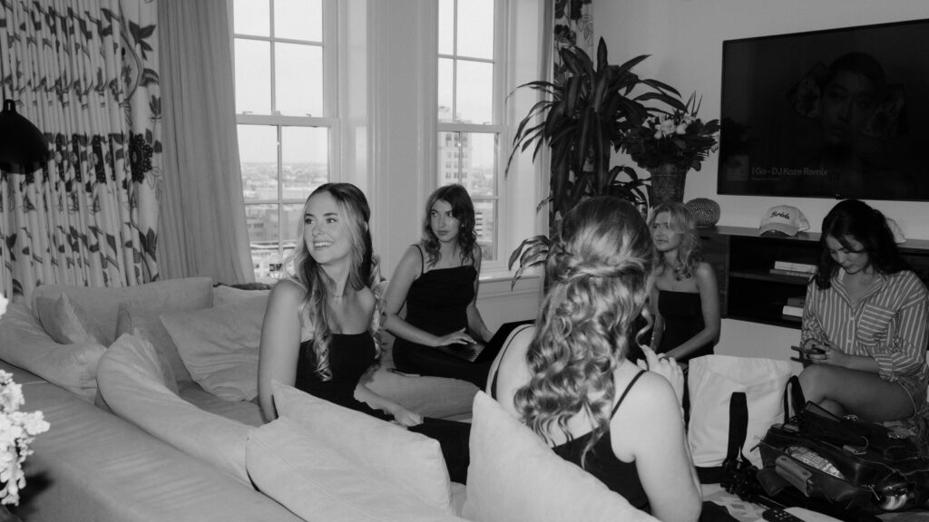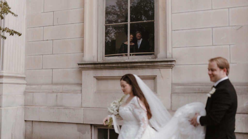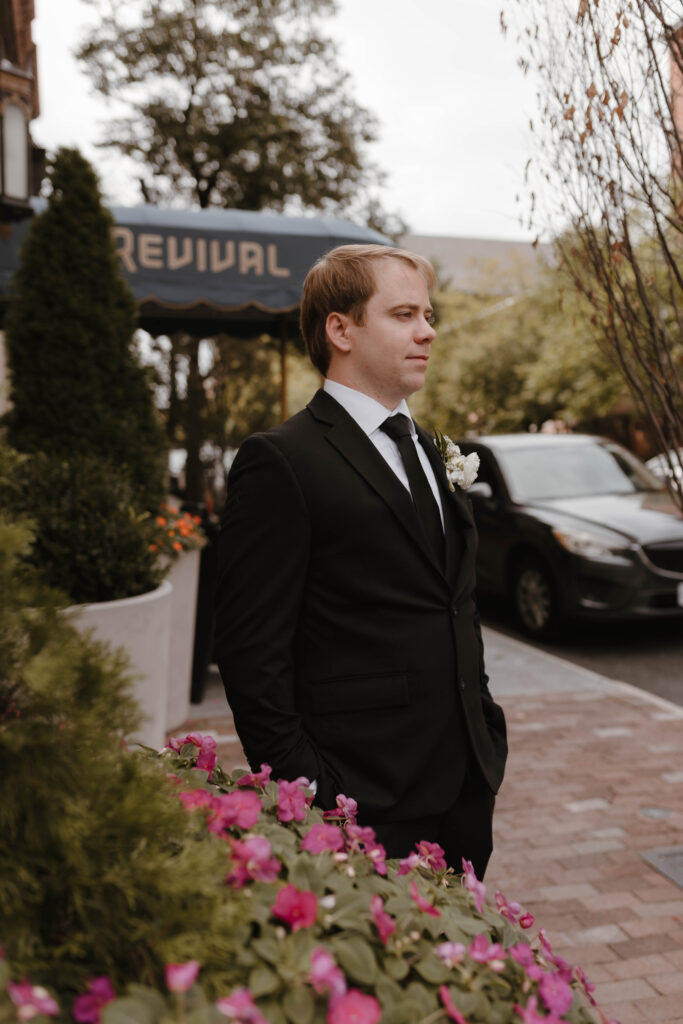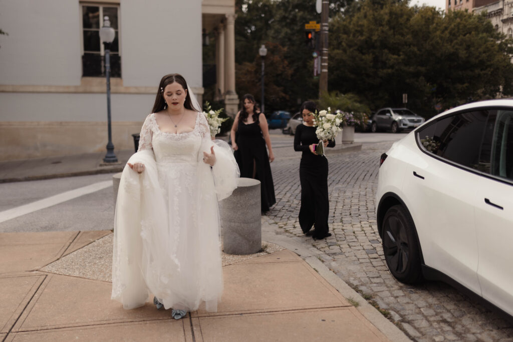 The morning began at the stylish Revival Hotel, only a short walk from the venue. It was there, surrounded by the buzz of anticipation, that Madison and Gabriel got ready for their day. From the hotel, we moved across the city streets to Mount Vernon, where the cathedral framed the background of their portraits and the park brought an intimate sense of balance to the architecture and history.
